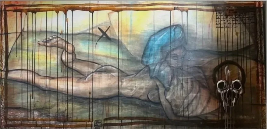 The work confronts the complexity of modern enchantment: how persuasion can be silent and digital, how the planning of a trap can be as intimate as a late-night scroll, how the giver of change is herself changed by the act of creation. The blackening layers echo the gradual surrender—the idea already taking form, the consequence already spreading.