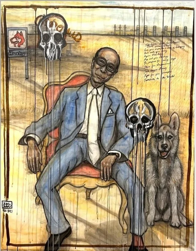 The work is a tribute to the billionaire as builder and giver: the one who turns vision into reality, who navigates power with discipline, who returns what he has earned to the world through quiet, sustained generosity. The blackening layers echo the toll of ambition—the long hours, the hard choices, the shadow that follows every triumph—yet the portrait remains luminous, grounded in the human behind the legend.
